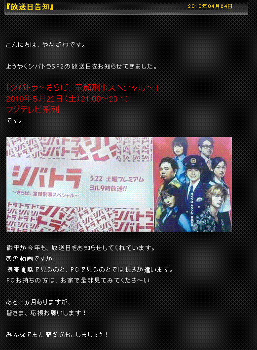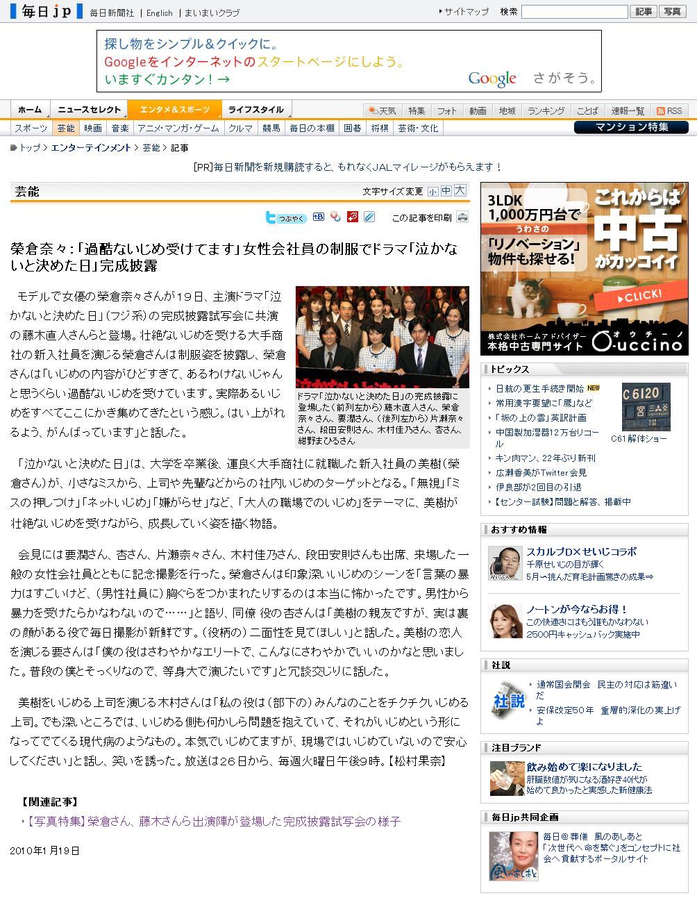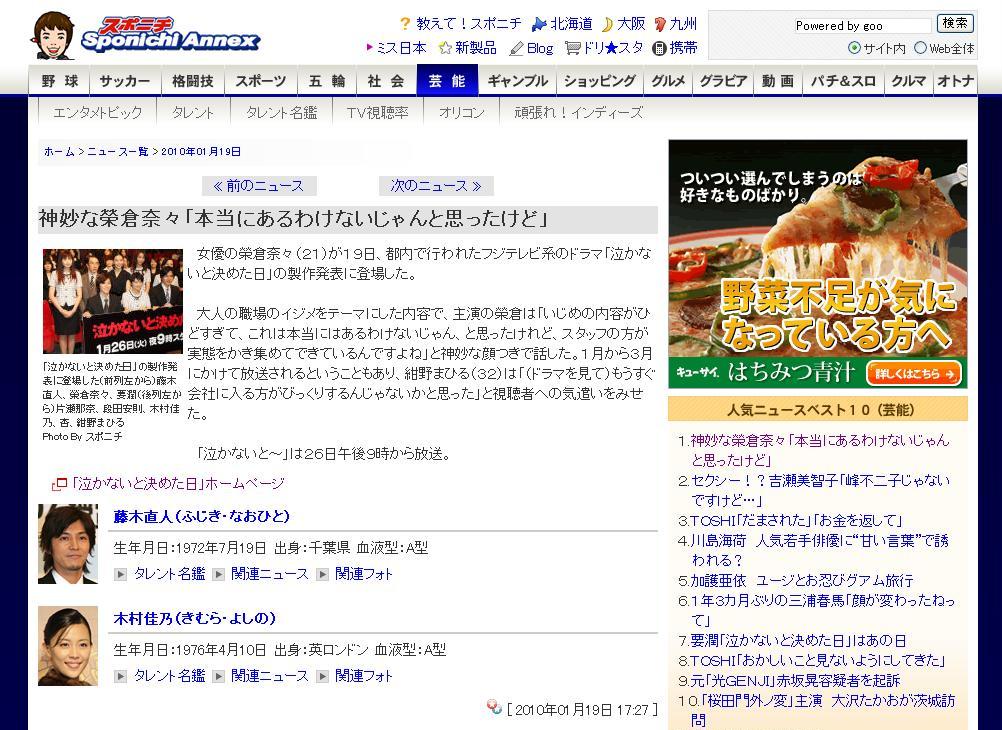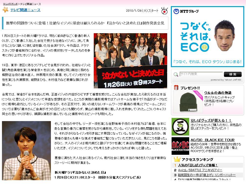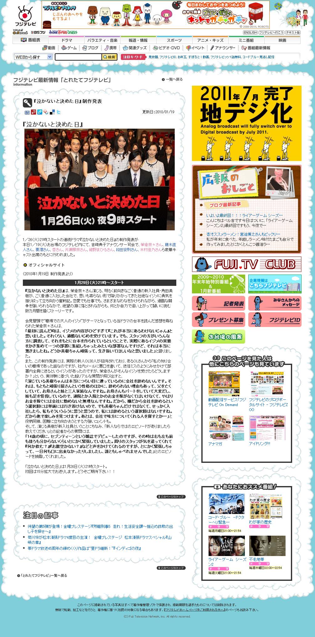 2010/01/22 (Fri) ♠ 「泣かないもん」関連情報 フジテレビ関連