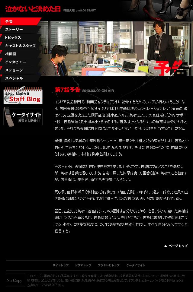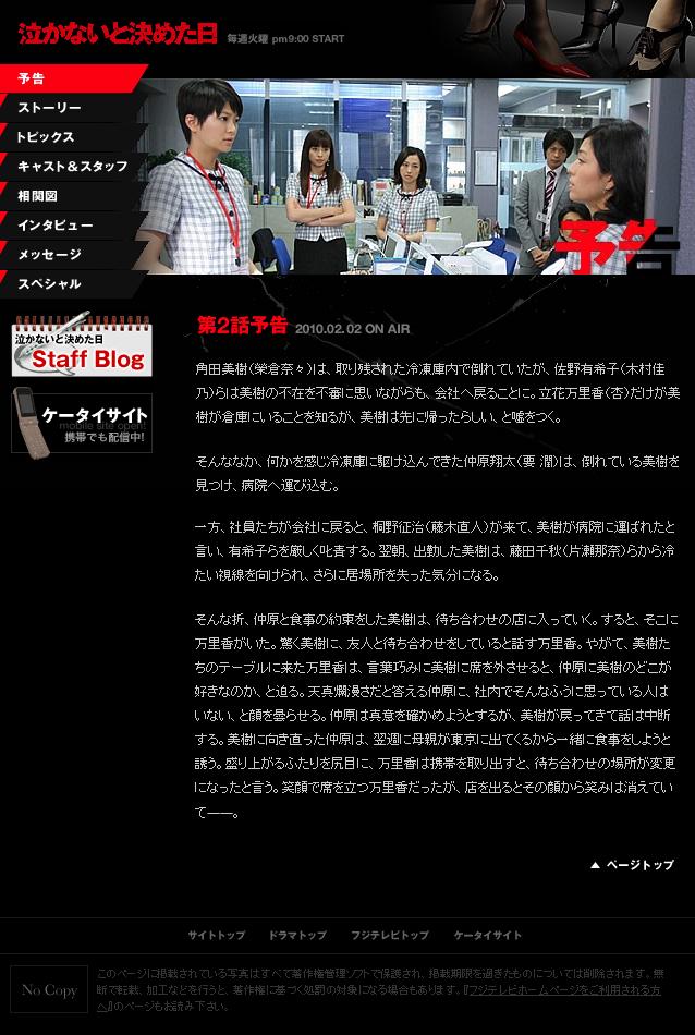 2010/01/27 (Wed) ♠ 泣かないと決めた日 #1 泣かないの感想
