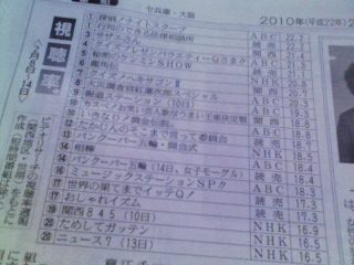 2010/01/13 (Wed) ♠ 2010年1月期 視聴率 テレビ誌のことなど