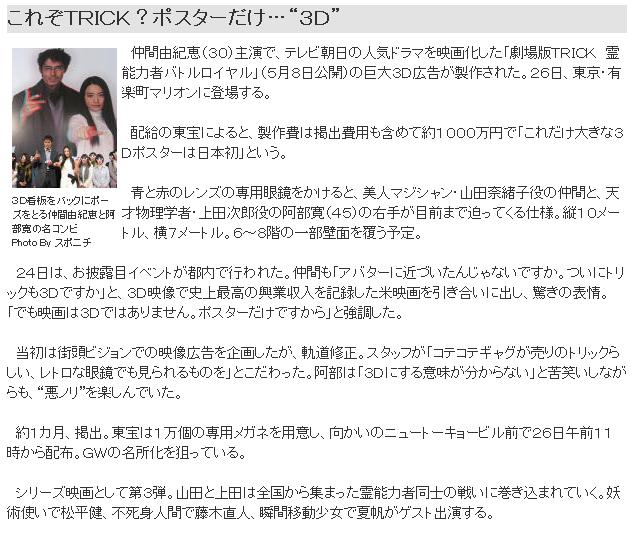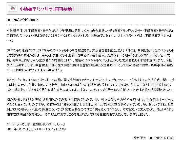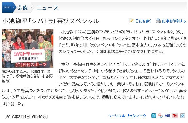 2010/01/20 (Wed) ♠ 週刊テレビ誌 製作発表掲載のスポ紙など