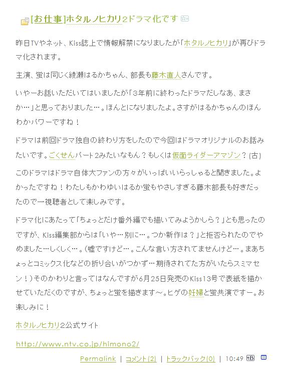 ■ 「ホタルノヒカリ」 再 BS日テレ 20:00~